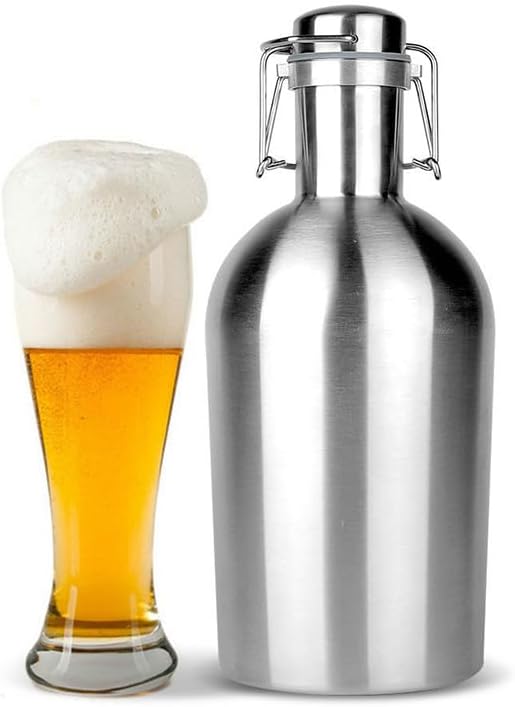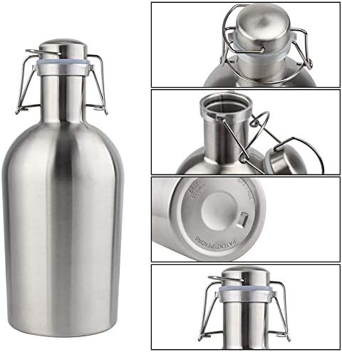 32OZ/64OZ Stainless Steel Beer Growler, Homebrew Portable Beer Barrel Secure Swing Top Lid Craft Beer BottleWhat's difference between "single wall" and "double wall" ?Single wall stainless steel Light weight single wall, Non-Insulated, design for easy travel.Double-layer structure with Insulation design, Have a greater advantage in maintaining the temperature of the liquid in the bottleSpecification:Material: 304 Stainless SteelThickness: 0.67mmCapacity: 32oz(1L) ; 64oz(1.9L) for chooseSize:32oz single wall: 9x23.5cm 64oz single wall: 11x28cm64oz double wall: 11.5 x 30.5cmProduct Features:EASY TO CARRY: Quick fold-down carrying handleEASY & SECURE CLOSE Swing top cap with airtight sealBPA FREE No plastic liner means beer maintains its premium flavorSwing Top lid to keep beer freshBest gift for beer lovers==========Product Type : Beer BottlesMaterial : Stainless steelOrigin : Mainland ChinaModel : 3 Typescapacity : 32oz(1L); 64oz(2L)32oz single wall : 9x23.5cm64oz single wall : 11x28cm64oz double wall : 11.5 x 30.5cmThickness : 0.67mmOrigin : China FactorySupport Customized : Wholesale & Bulk Order