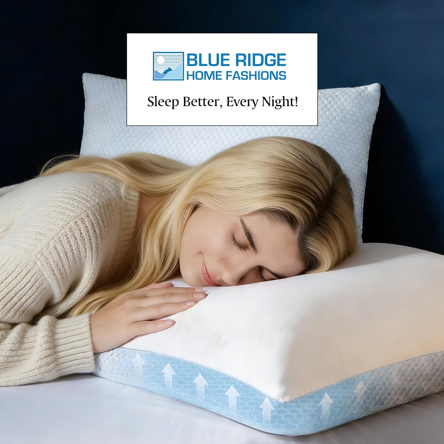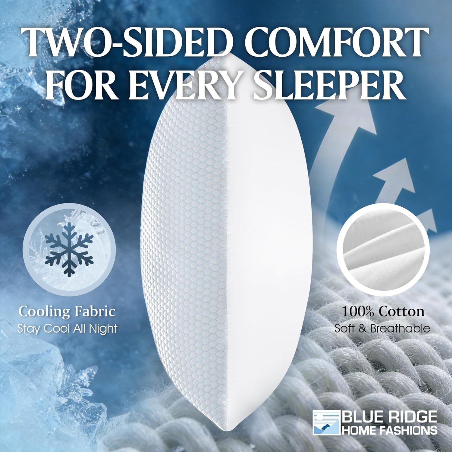 Blue Ridge Home Fashions Cooling Bed Pillows Queen Size Set of 2, Reversible Cooling & Cotton Fabric, Medium Firm, Down Alternative Breathable for Hot, Side, Back & Stomach Sleepers, 20" x 28"
