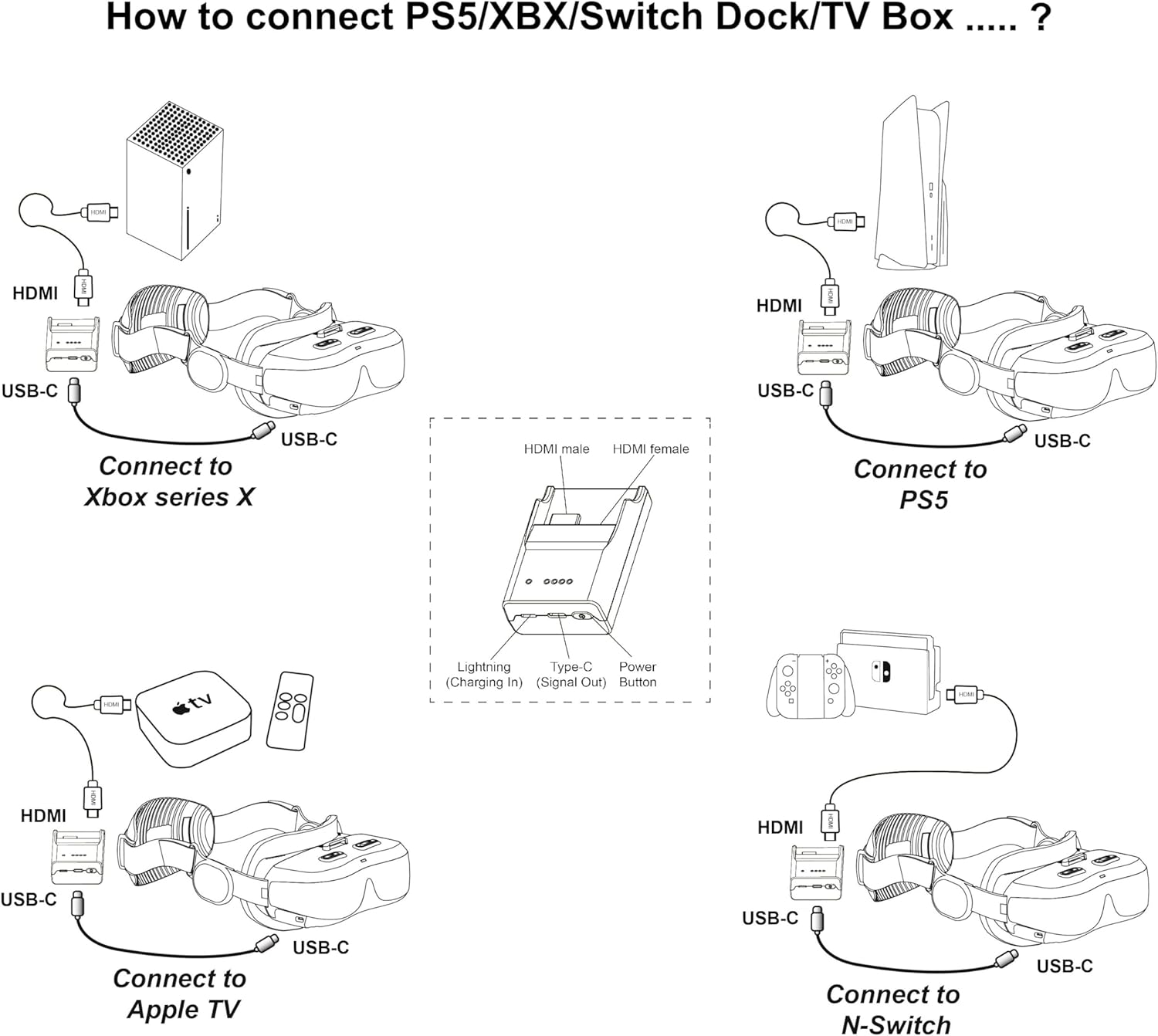 Easy Connect to Apple Phone 14 & Earlier Models Plug and Play, no Need APP. Direct Play on PS5/Xbx/Switch Dock Set/Gaming Consoles